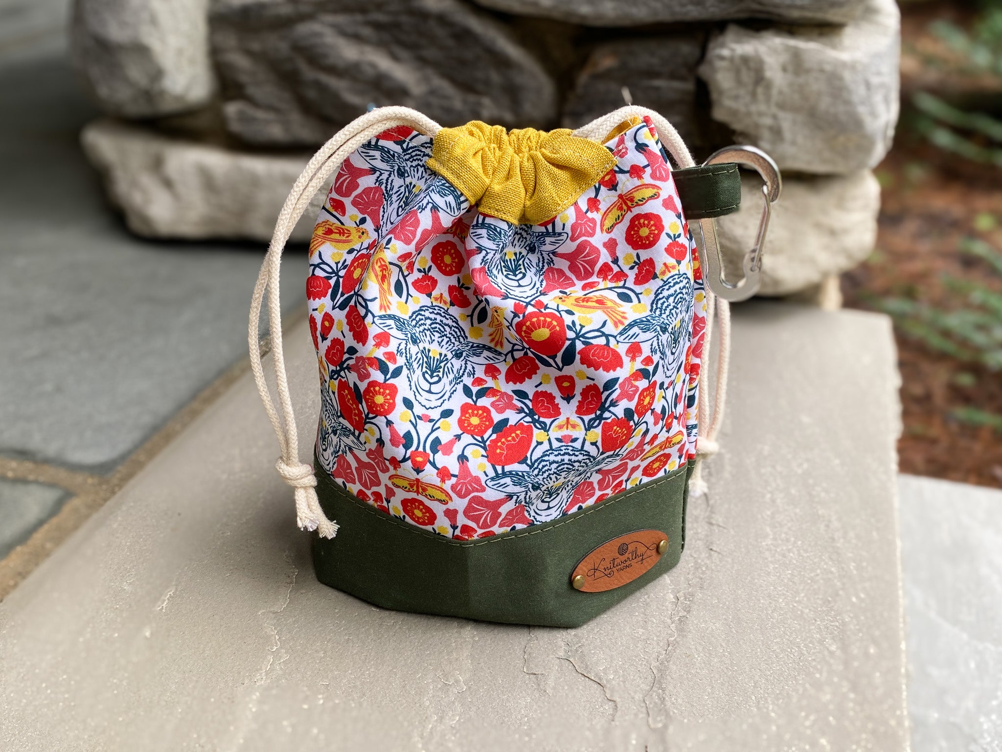 Perfect for that “car project” that we all have just in case! Or if you love to knit in public and can knit and walk, then this is the bag for you! We added a carabiner so you can clip it onto your belt, a carry-on bag for travel knitting, or something more adventurous, like your weighted vest when you’re hiking. A little nod to another dear friend that inspired this project.