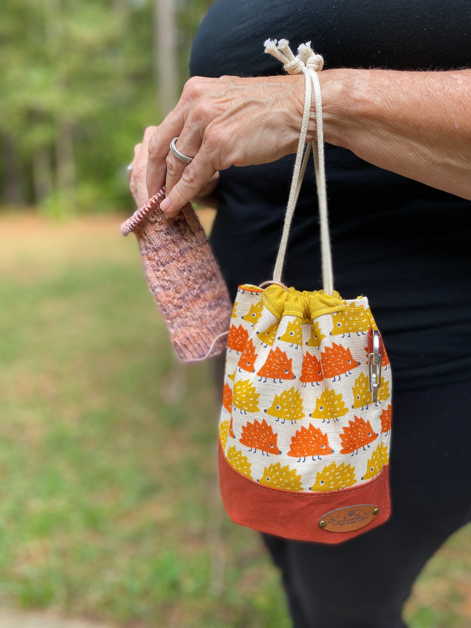 The perfect petite project bag for all your munchkin-sized projects. It was originally designed for sock knitters and tested by our dear friend who is a serious sock knitter!