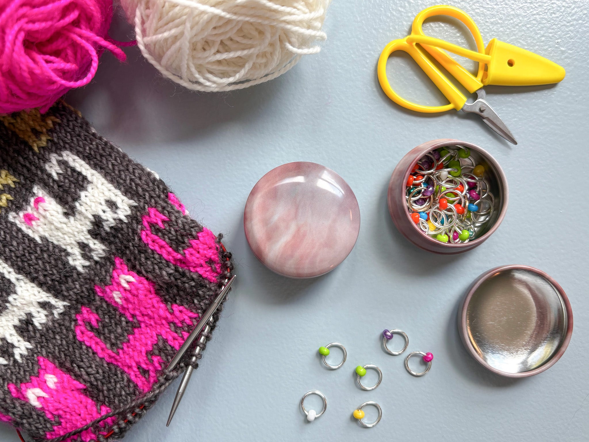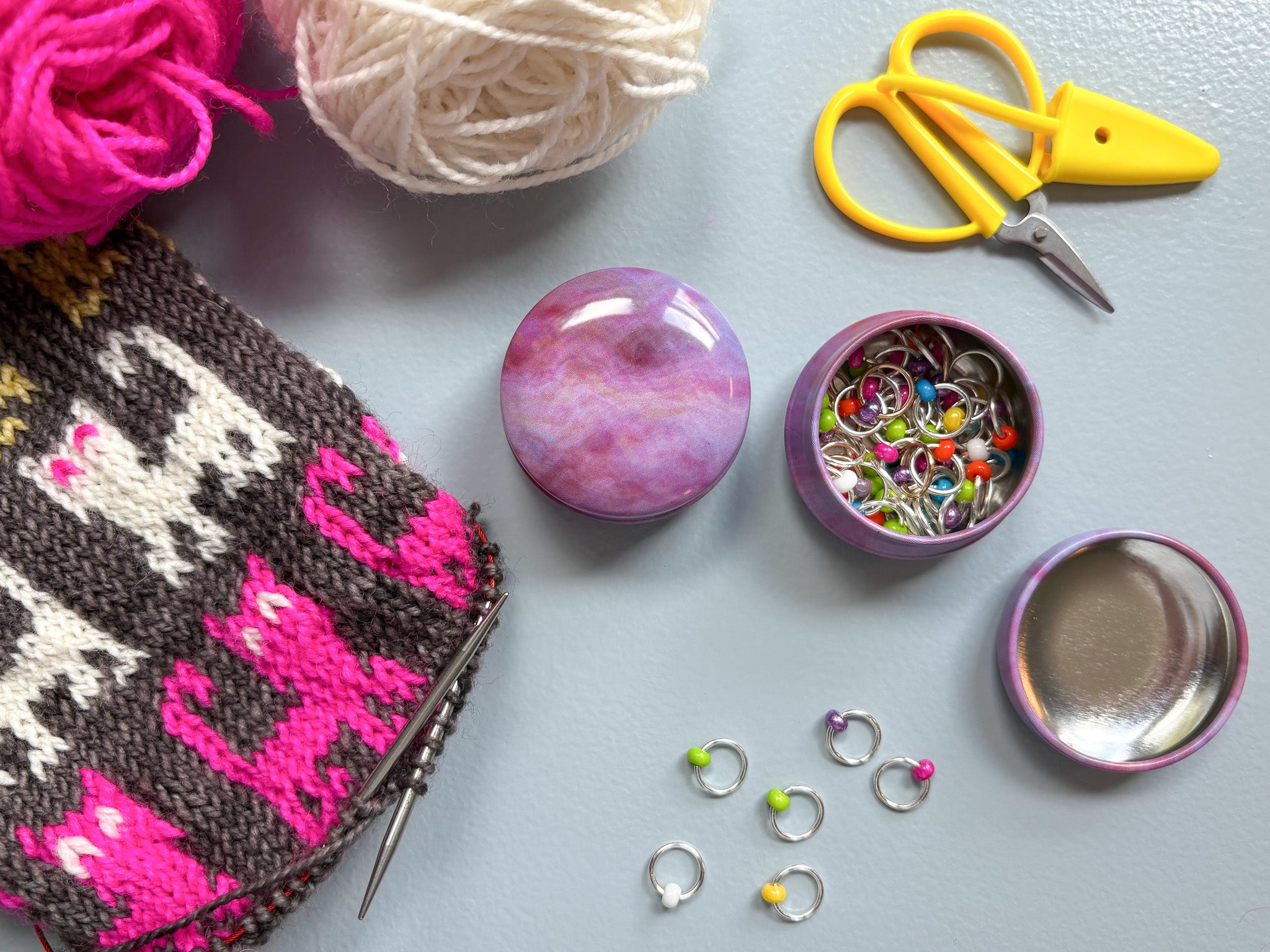 A little cuteness for your notions. Perfect for holding stitch markers, progress keepers, and small needle toppers.