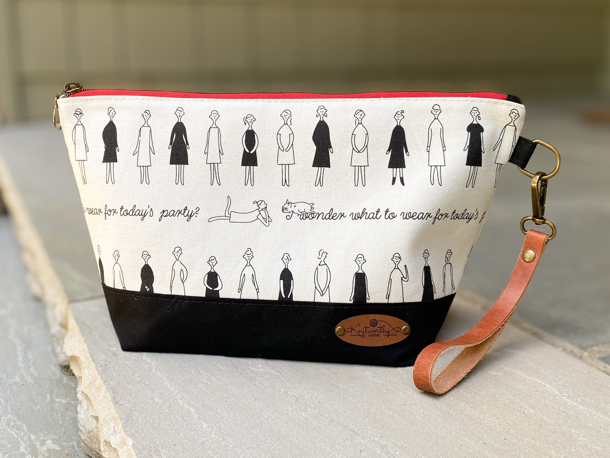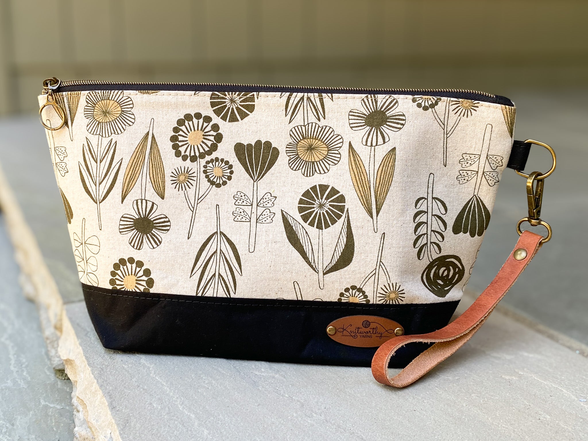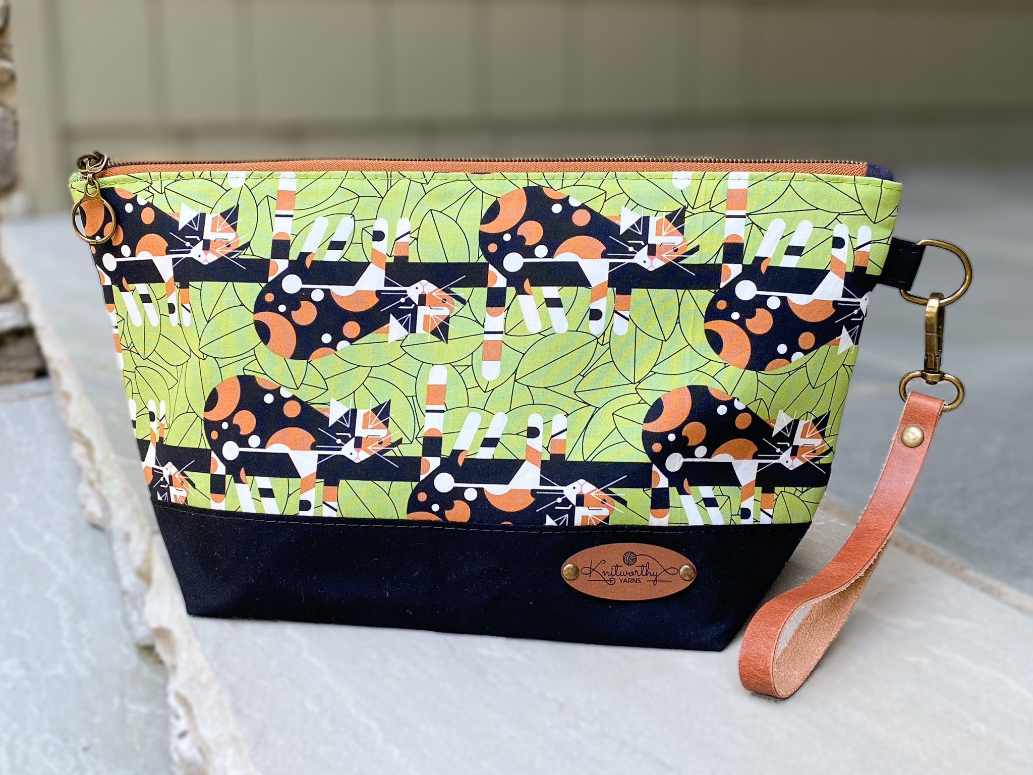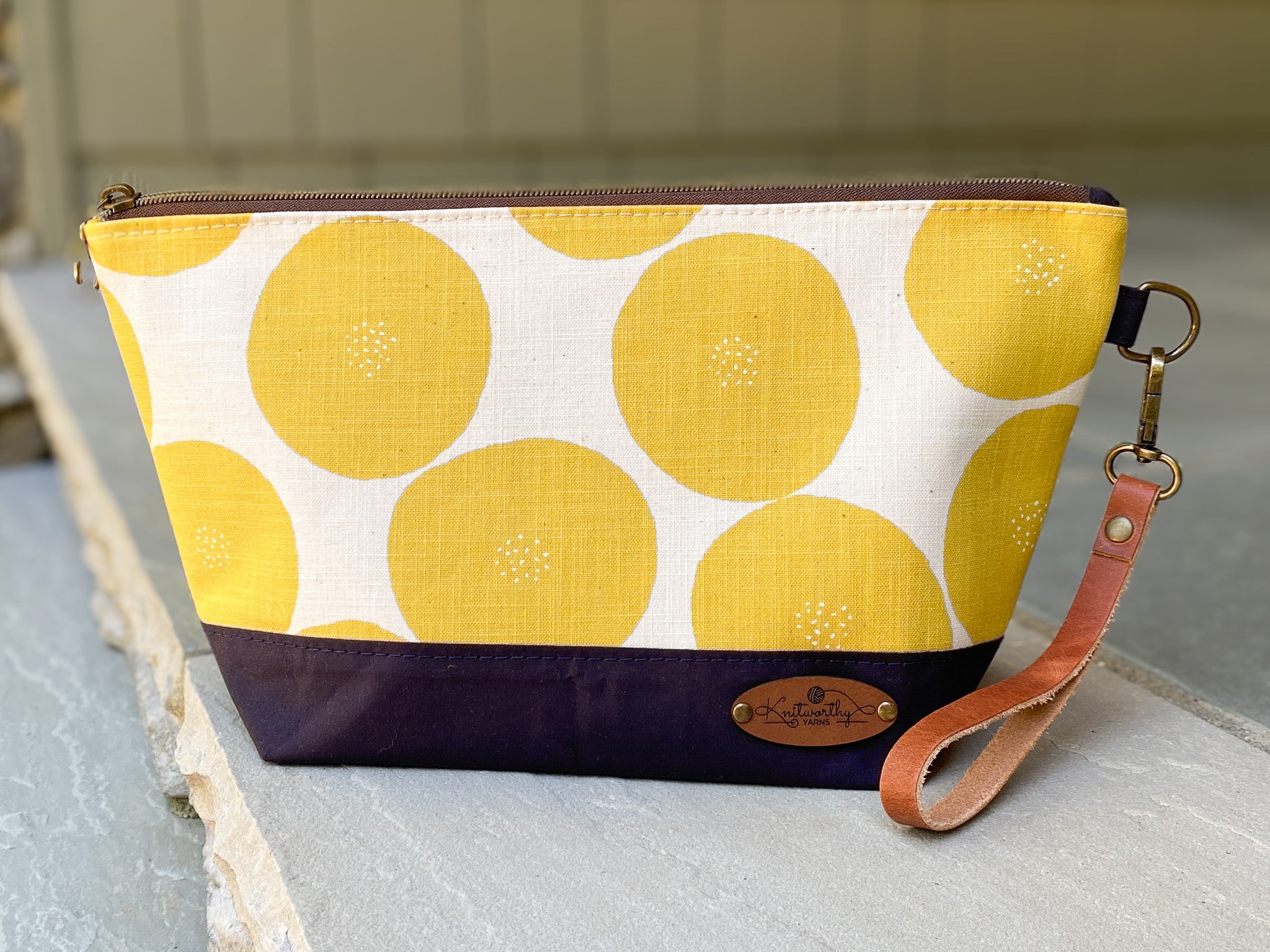 We are both in our zipper era and wanted a bag that would hold a bigger project, stand up when in use, fit easily in a bigger tote, and store flat when empty.This extra large project bag has a dry oilskin bottom, so you can put it on a cafe table, or the ground, and not worry about it getting dirty... it will wipe off!