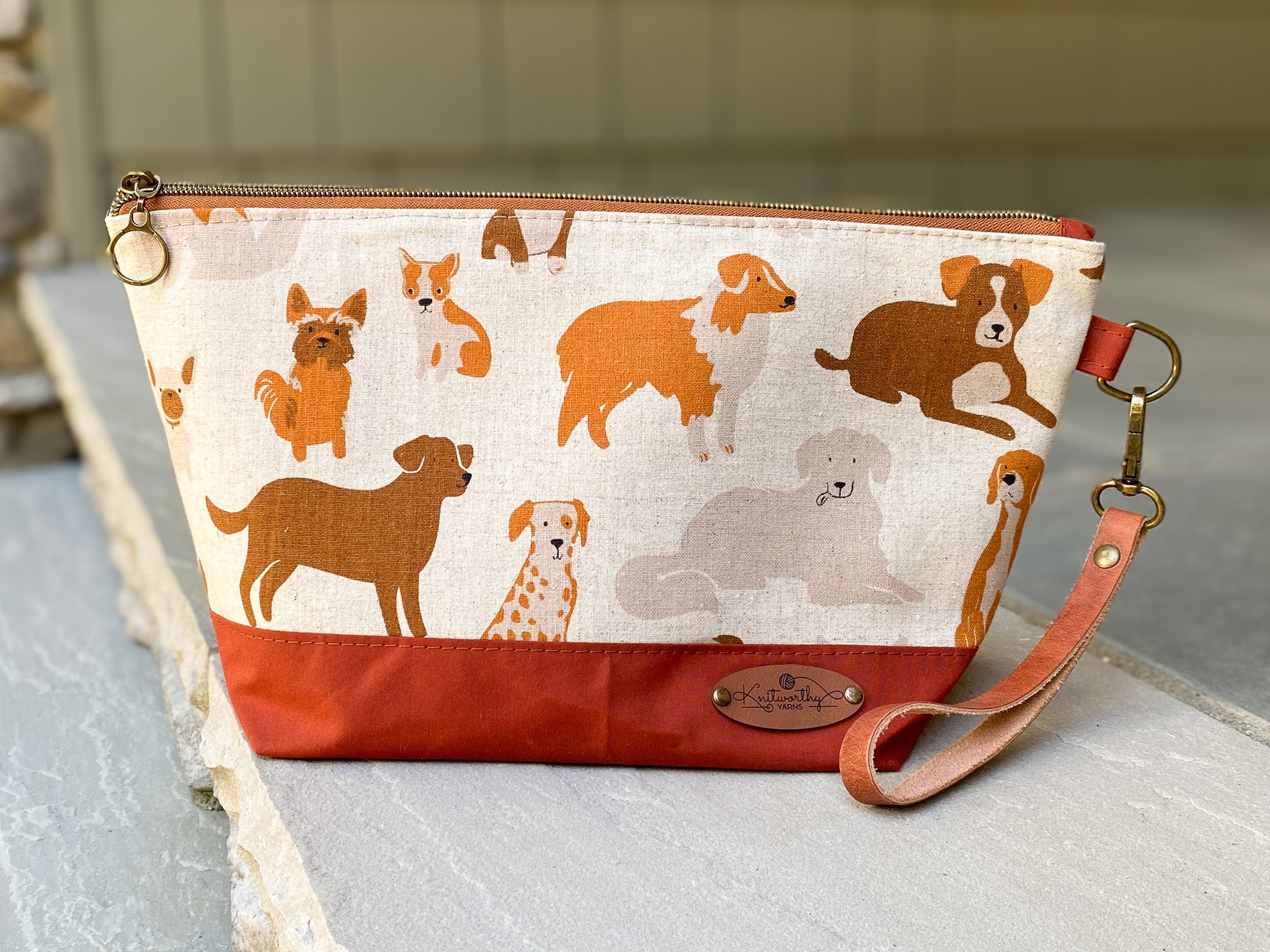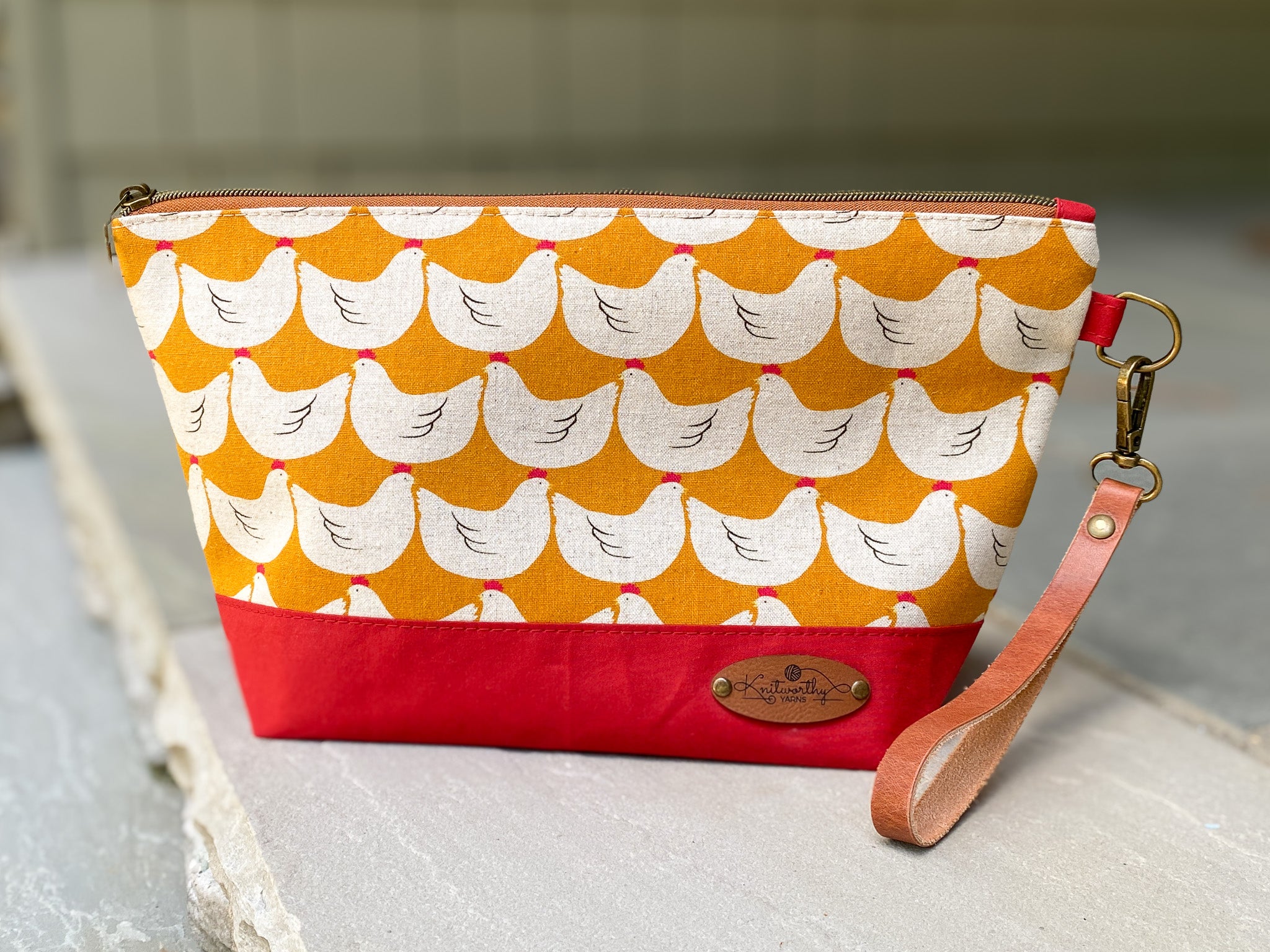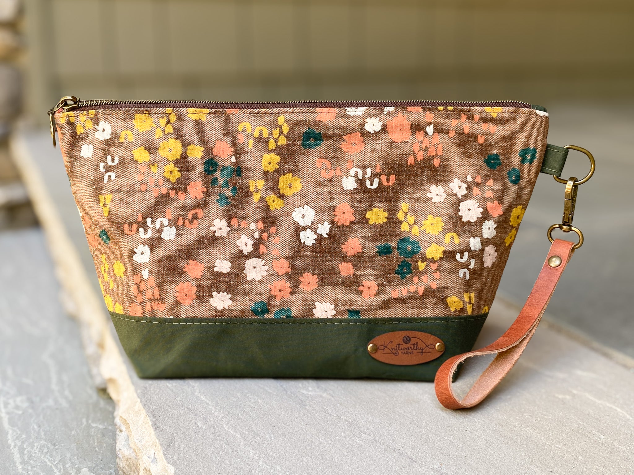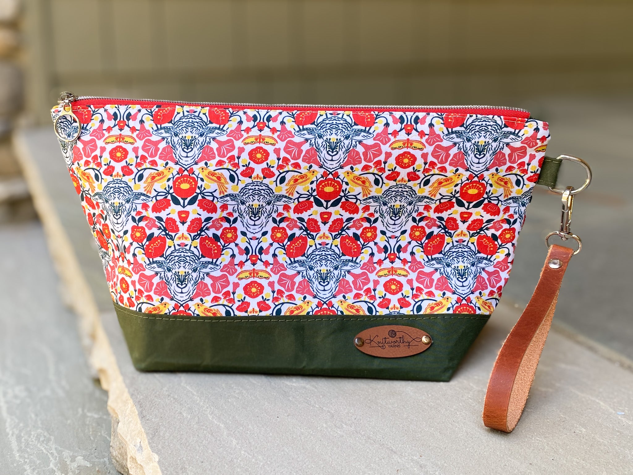 We are both in our zipper era and wanted a bag that would hold a bigger project, stand up when in use, fit easily in a bigger tote, and store flat when empty.This extra large project bag has a dry oilskin bottom, so you can put it on a cafe table, or the ground, and not worry about it getting dirty... it will wipe off!